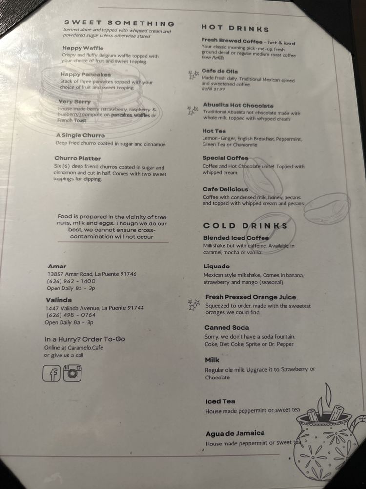 Welcome to Caramelo Café, a delightful creperie in La Puente, CA, offering a diverse menu perfect for breakfast, brunch, or lunch. This Latinx and women-owned establishment prides itself on its vegan and vegetarian options, welcoming atmosphere, and exceptional service. With its dedication to accessibility, eco-friendly practices, and diverse payment options, Caramelo Café ensures a pleasant dining experience for all. Customers rave about the generous portions, delicious food, and accommodating staff. Whether you're craving a savory breakfast burrito, delectable chilaquiles, or a perfectly crafted latte, Caramelo Café has something to satisfy every palate. Come and indulge in a culinary experience that is not only flavorful but also socially conscious and inclusive.