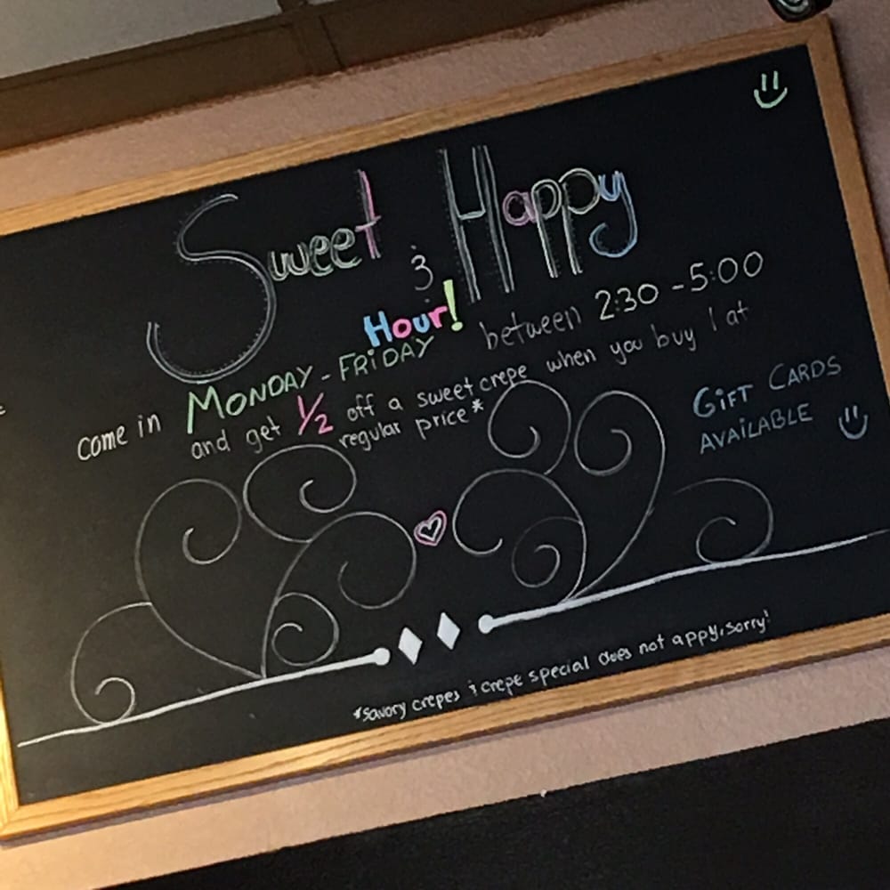 Crepe filled with choices of banana & Nutella, Brazilian delicacies, brown sugar & cinnamon, classic butter & sugar, flambeed creations, fresh strawberries, condensed milk & pecans, strawberry delight, Parisian fruit selection, mixed berries, or tropical fruits.