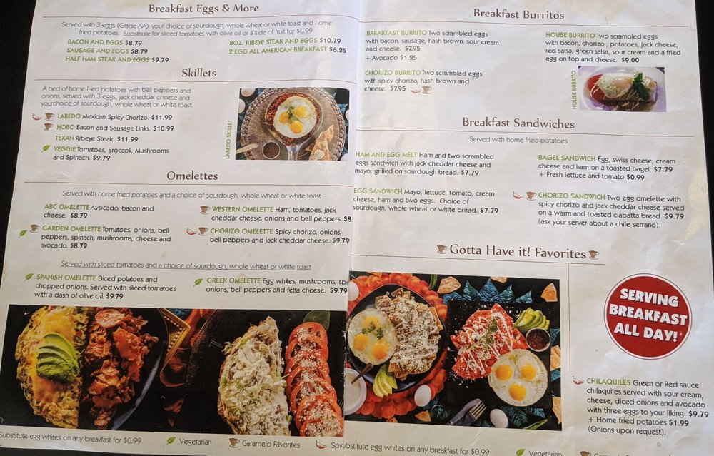 Sauteed onions, poblano peppers, Monterrey Jack cheese served with home fries and toast